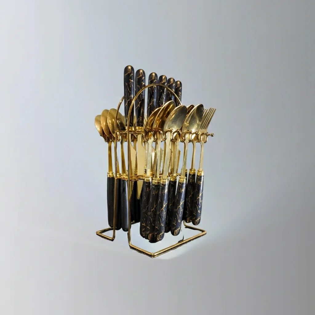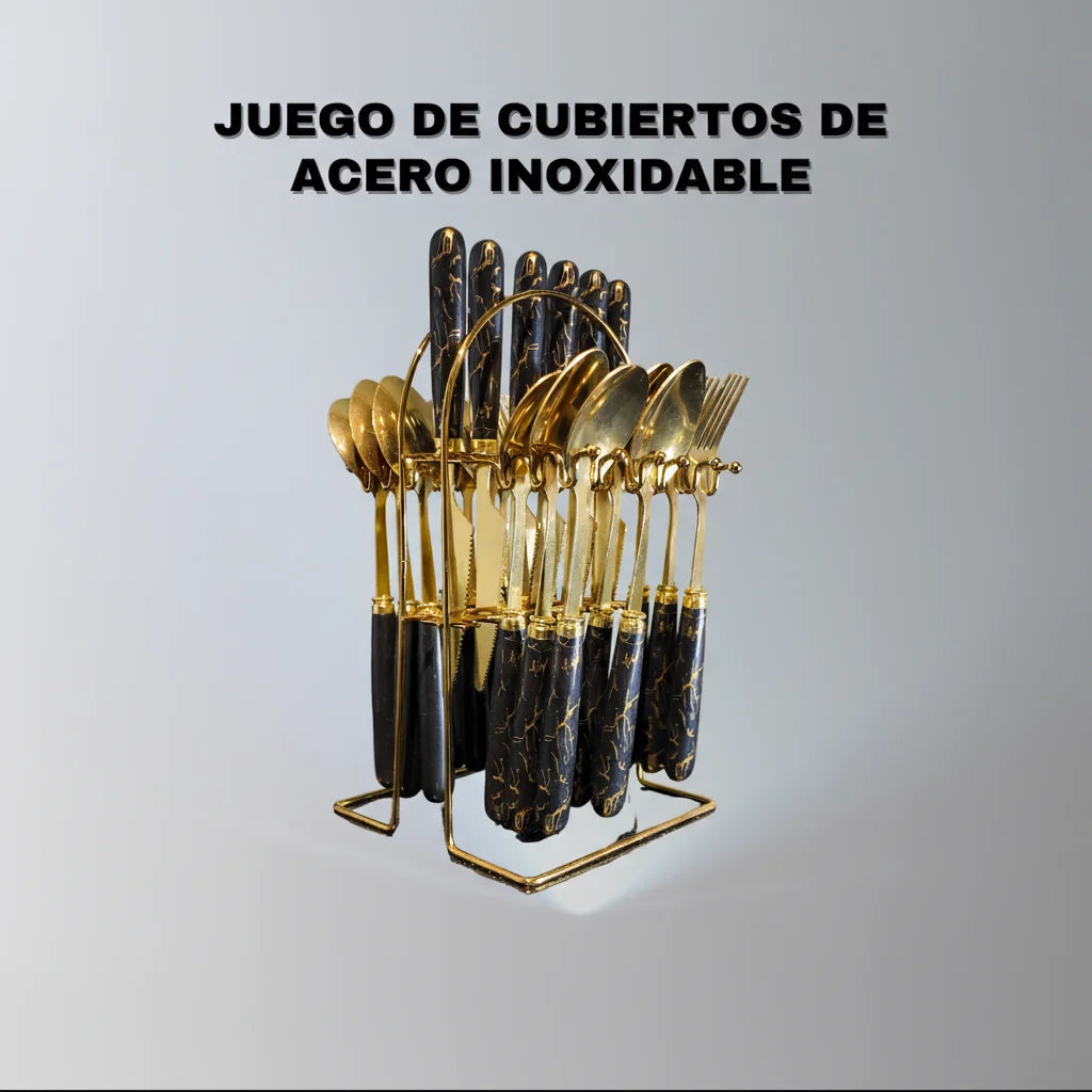 Set Cubiertos Dorado y Negro