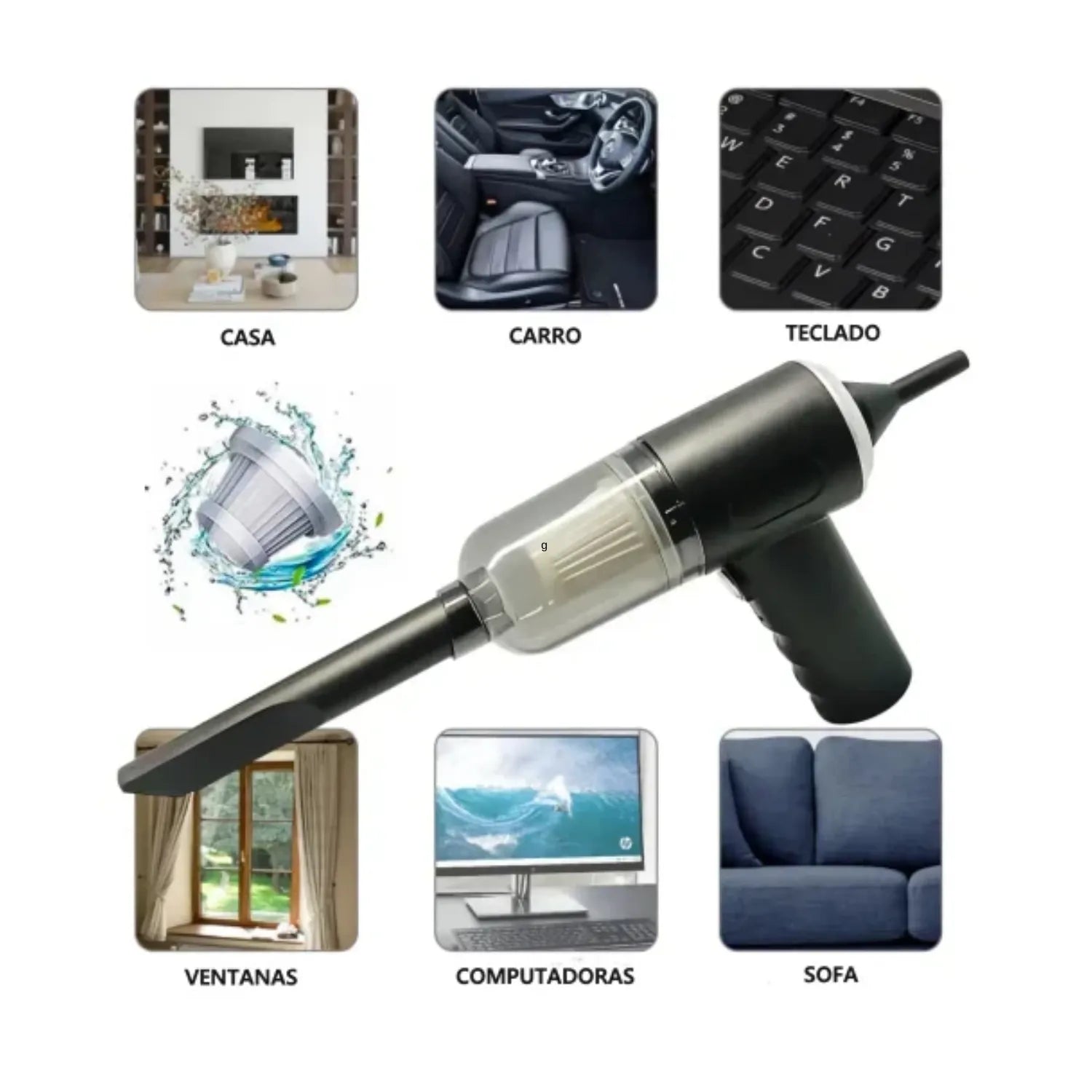 Con la mini aspiradora 3 en 1, olvídate del desorden. Limpia cada rincón de tu casa o carro con una sola herramienta versátil. ¡La limpieza nunca fue tan fácil y rápida!